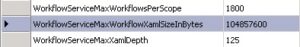 3. Изменяем параметр WorkflowServiceMaxWorkflowXamlSizeInBytes — 104857600