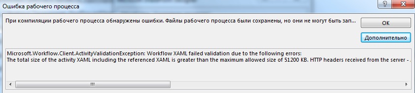 The total size of the activity XAML including the referenced XAML is greater than the maximum allowed size of 51200 KB.